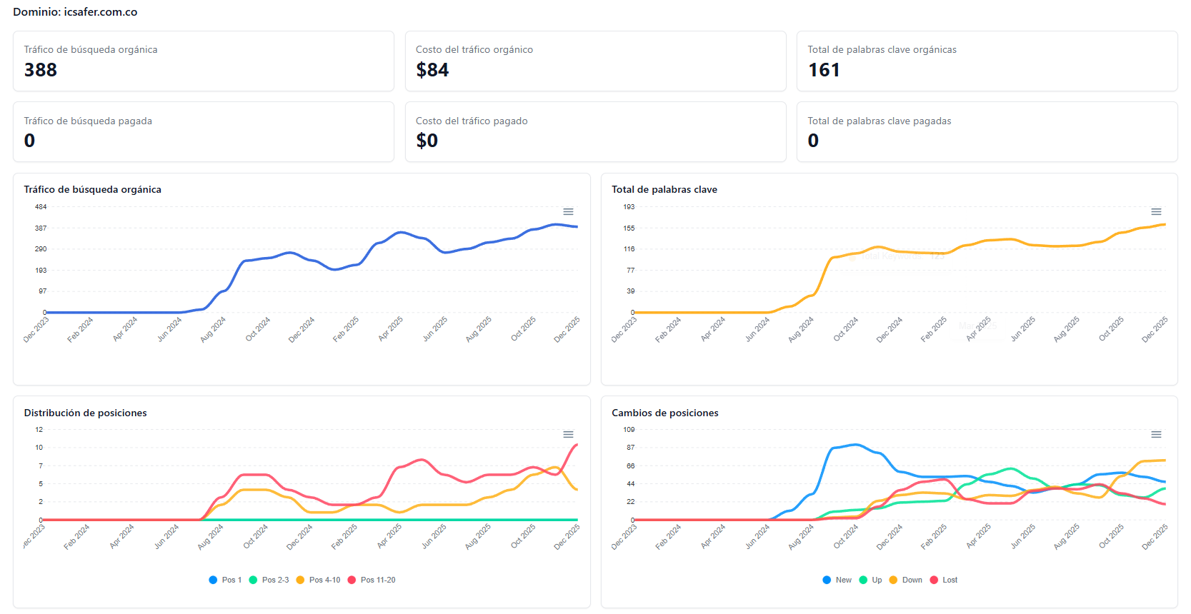 Para fortalecer la presencia digital de ICsafer, realizamos la indexación y optimización del sitio en Google Search Console SEO